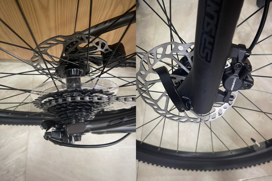 Hệ thống phanh đĩa dầu Tektro cung cấp lực phanh mạnh mẽ và chính xác, đảm bảo an toàn tối đa trong mọi điều kiện thời tiết và địa hình.