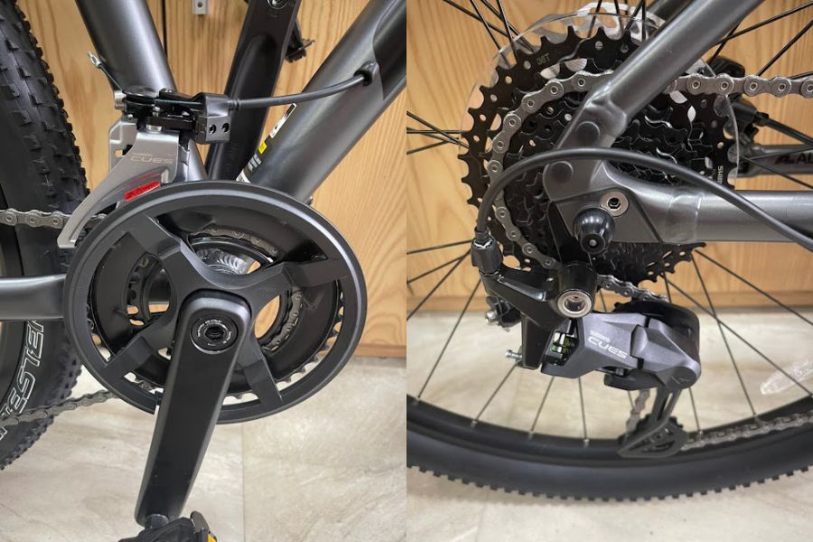 Bộ truyền động Shimano 2×9 tốc độ giúp người dùng chuyển số dễ dàng, nhanh chóng và chính xác. Cấu hình này phù hợp với cả địa hình dốc đứng lẫn đường bằng, mang đến khả năng vận hành mượt mà và ổn định.