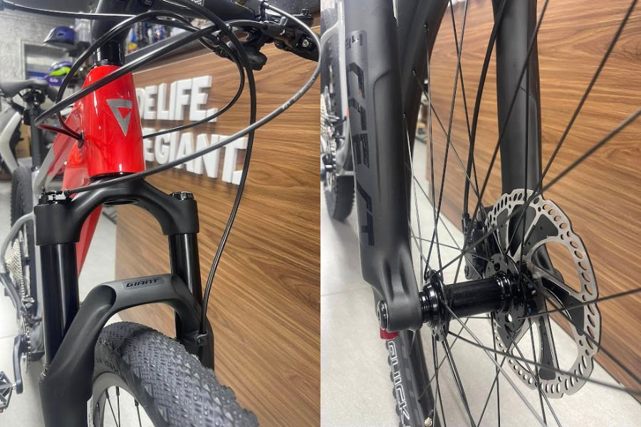 Xe được trang bị phuộc trước hợp kim Magie GIANT CREST với chức năng khóa, hỗ trợ giảm chấn hiệu quả khi di chuyển trên các bề mặt gồ ghề. Điều này đảm bảo sự thoải mái và an toàn cho người sử dụng trong suốt hành trình.
