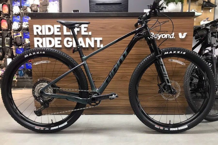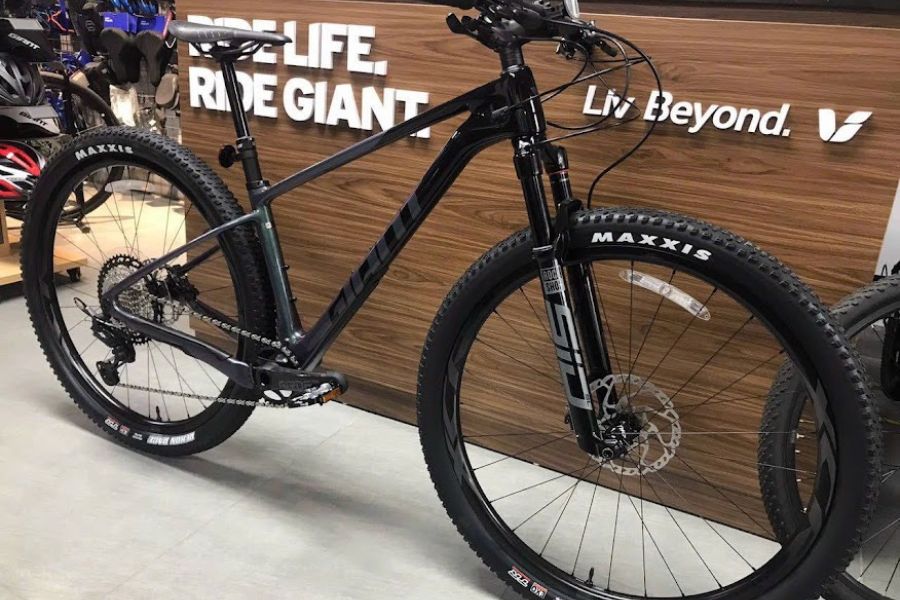 Vành Giant XCR Carbon giúp giảm trọng lượng xe, trong khi lốp Maxxis 29×2.25 mang lại độ bám đường cao, giúp xe vận hành ổn định hơn trong mọi điều kiện địa hình.