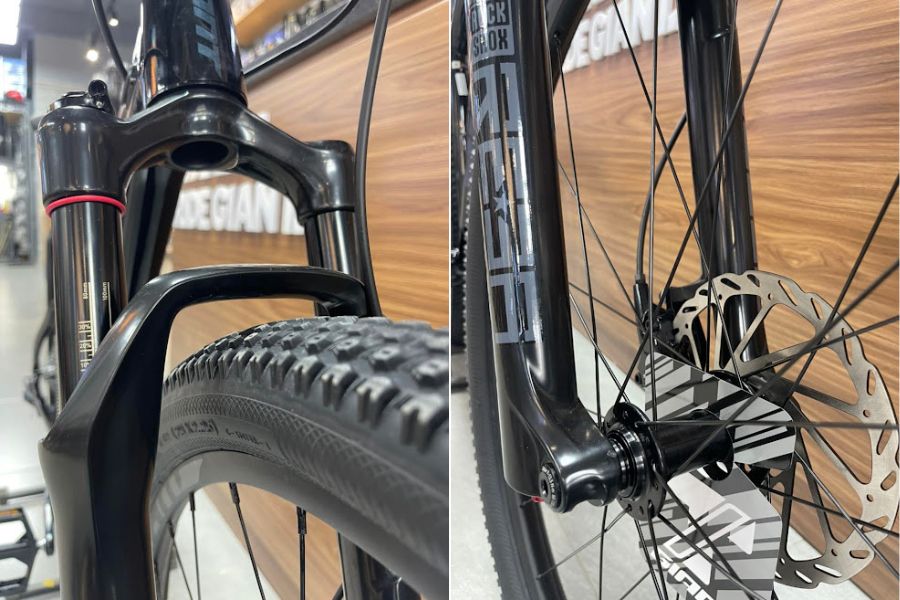 Xe được trang bị phuộc khí RockShox SID RL, với hành trình 100mm, giúp hấp thụ xung lực hiệu quả khi di chuyển trên địa hình gồ ghề, sỏi đá hoặc đường đồi núi.