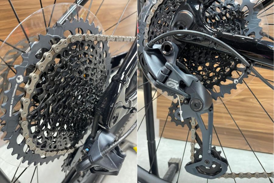Hệ thống SRAM GX 1x12S giúp xe tăng tốc nhanh, sang số chính xác và kiểm soát tốt hơn khi leo dốc hoặc băng đồng.