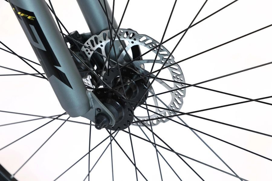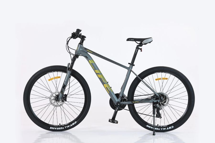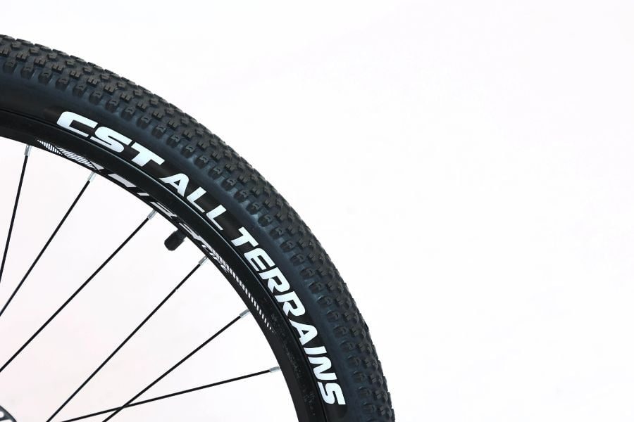 Life Hesky có bánh xe kích thước 27.5 inch, sử dụng lốp CST ALL TERAINS 27.5×2.1, giúp tăng khả năng bám đường và ổn định khi di chuyển qua các địa hình phức tạp. Bánh xe được kết hợp với vành nhôm hai lớp, giúp xe chịu được tải trọng lớn mà vẫn duy trì độ linh hoạt.