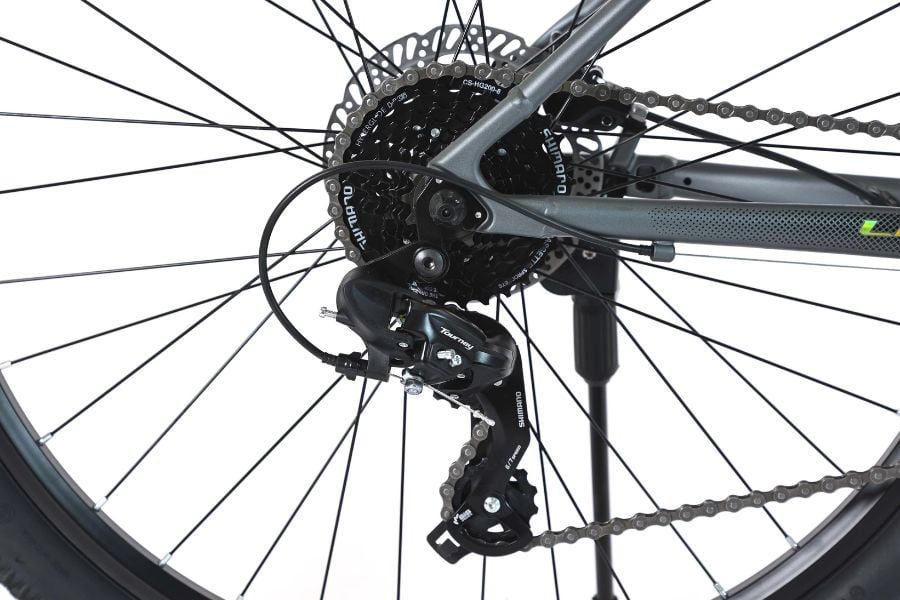 Xe được trang bị hệ thống truyền động Shimano với 24 tốc độ, bao gồm tay đề L-TWOO A3 và củ đề trước sau Shimano Tourney TY-500 và TY-300. Hệ thống này cho phép người lái dễ dàng chuyển số mượt mà, phù hợp với nhiều dạng địa hình khác nhau, từ đường bằng đến địa hình gồ ghề.