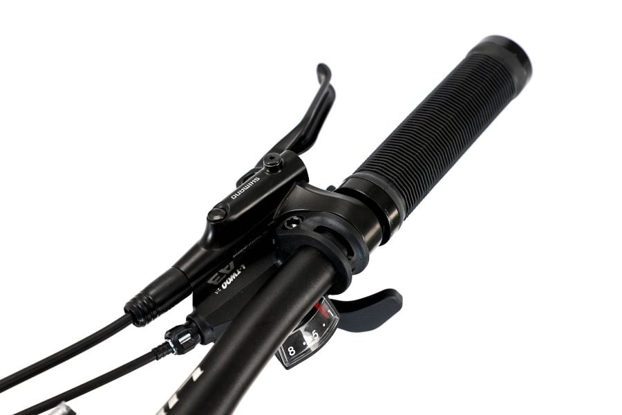 Xe sử dụng phanh đĩa dầu Shimano MT200, mang lại khả năng phanh mạnh mẽ và chính xác. Hệ thống phanh này đảm bảo an toàn cho người lái, đặc biệt trong các điều kiện địa hình khó khăn, khi cần dừng xe khẩn cấp.