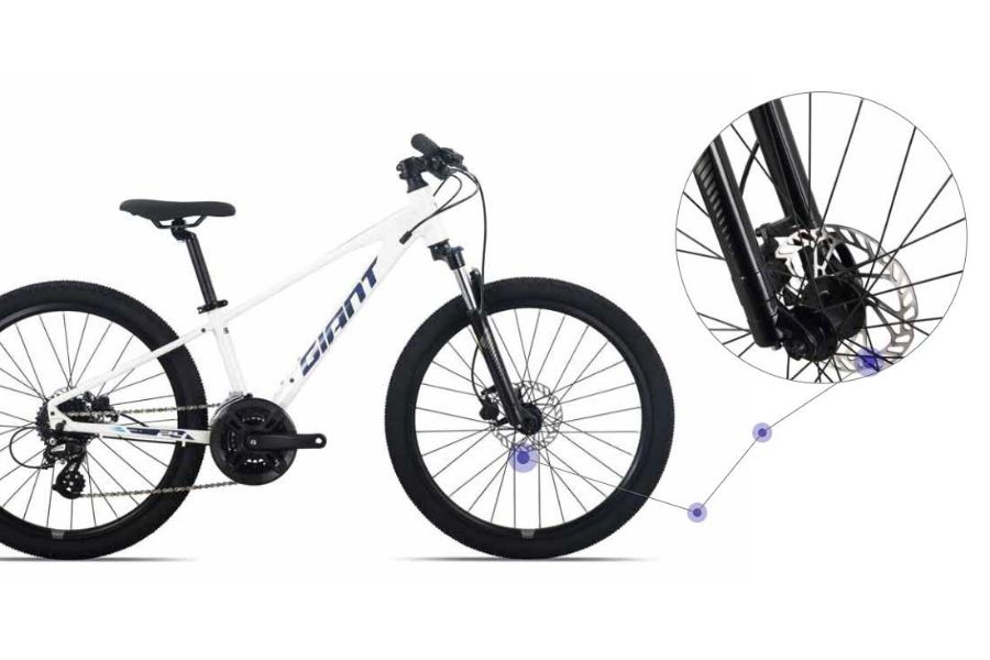 Khác với các dòng xe phổ thông chỉ trang bị phanh V hoặc phanh đĩa cơ, GIANT 2025 XTC 24-D 1 được tích hợp phanh đĩa dầu hợp kim cho lực hãm mạnh, phản hồi nhanh và hiệu quả cao trong điều kiện thời tiết mưa, trơn trượt. Hệ thống phanh này góp phần nâng cao tính an toàn trong các tình huống khẩn cấp hoặc khi xuống dốc tốc độ cao.