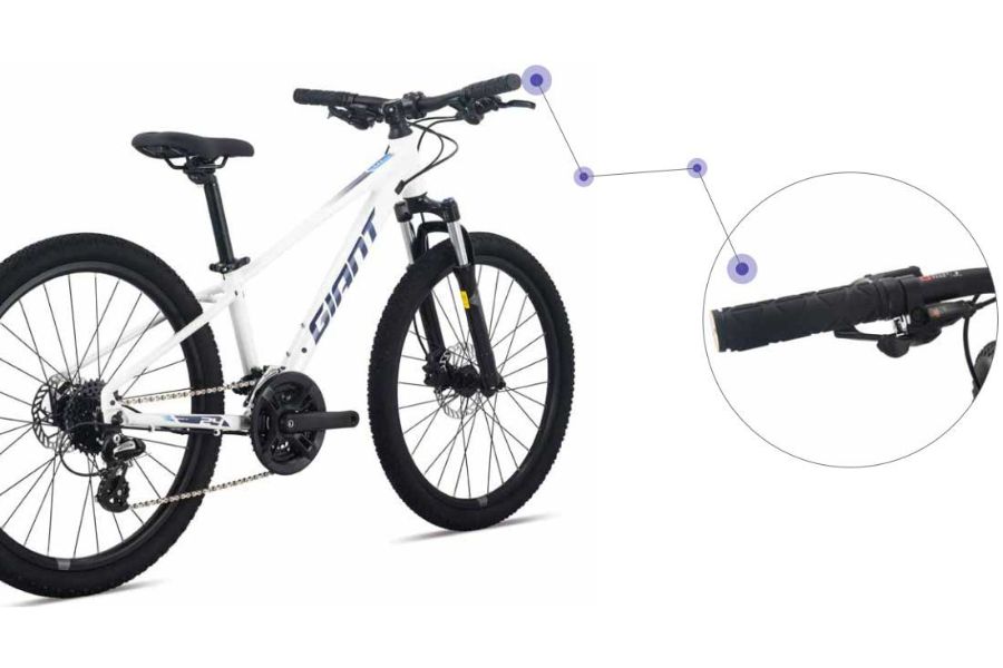 Tay phanh trên xe được thiết kế đặc biệt với độ ngắn vừa tay trẻ, giúp trẻ dễ dàng bóp phanh mà không cần dùng quá nhiều lực. Đây là yếu tố được GIANT chú trọng để hỗ trợ tối đa người lái nhỏ tuổi về mặt kỹ thuật và an toàn.