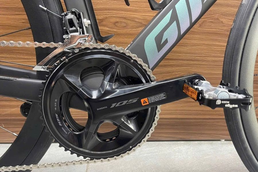 Một trong những yếu tố quan trọng tạo nên sự khác biệt của Giant Propel Adv 2 NJ bản 2024 chính là hệ thống Shimano 105 11 tốc độ. Bộ truyền động này nổi bật với khả năng chuyển số mượt mà, chính xác và bền bỉ. Shimano 105 là một trong những bộ truyền động phổ biến trên các xe đua cao cấp, mang lại cảm giác lái êm ái và hiệu suất tối đa, đặc biệt khi di chuyển trên các địa hình đồi núi hay trong các cuộc đua tốc độ cao.