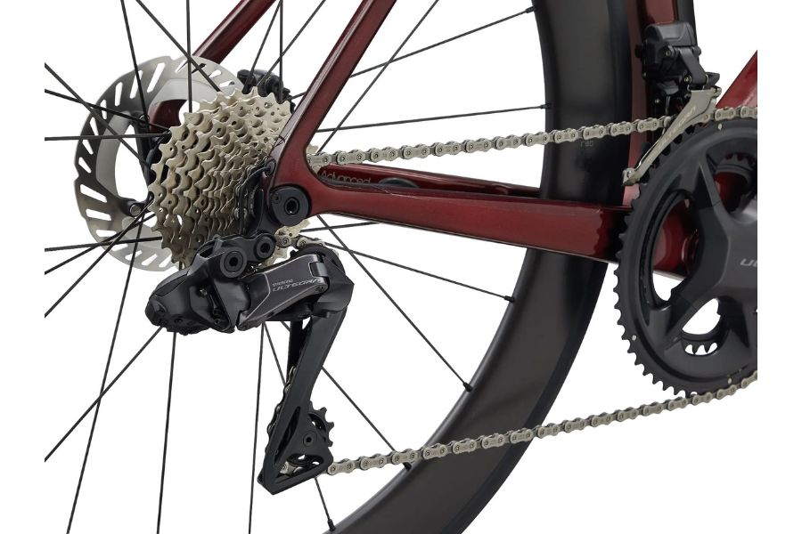 - Bộ truyền động Shimano Dura-Ace Di2 12-speed cho khả năng chuyển số mượt mà và chính xác.