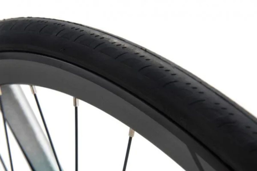 Hệ thống bánh xe được làm từ hợp kim nhôm hai lớp kết hợp lốp Kenda 700x25c, giúp tăng độ bám đường và khả năng lướt nhanh. Thiết kế này không chỉ mang lại sự thoải mái mà còn đảm bảo hiệu suất cao trên các chặng đường dài.