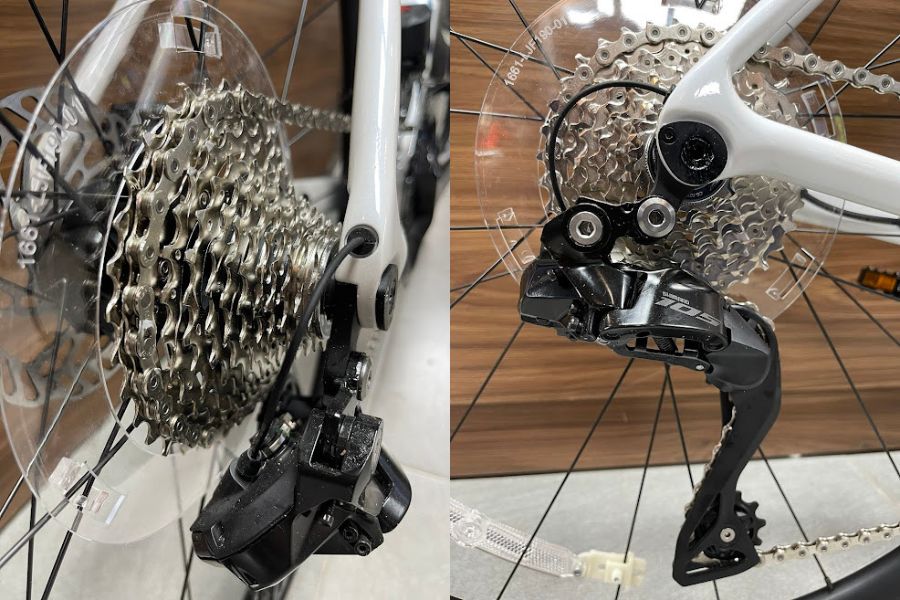 Xe được trang bị bộ truyền động Shimano Ultegra, mang lại khả năng chuyển số mượt mà và chính xác. Đây là điểm cộng lớn cho những tay đua cần duy trì sự ổn định khi thay đổi tốc độ đột ngột hoặc leo dốc.