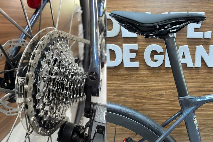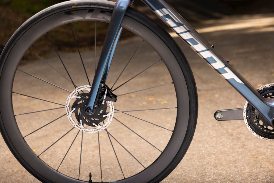 Xe được trang bị phuộc Advanced SL-Grade Composite, mang lại khả năng kiểm soát tuyệt vời và độ ổn định khi di chuyển ở tốc độ cao. Hệ thống bánh xe Giant SLR 0 40 Carbon Disc với lốp CADEX Race GC Tubeless giúp tăng cường độ bám đường và khả năng xử lý tình huống trong các cuộc đua đòi hỏi hiệu suất cao.