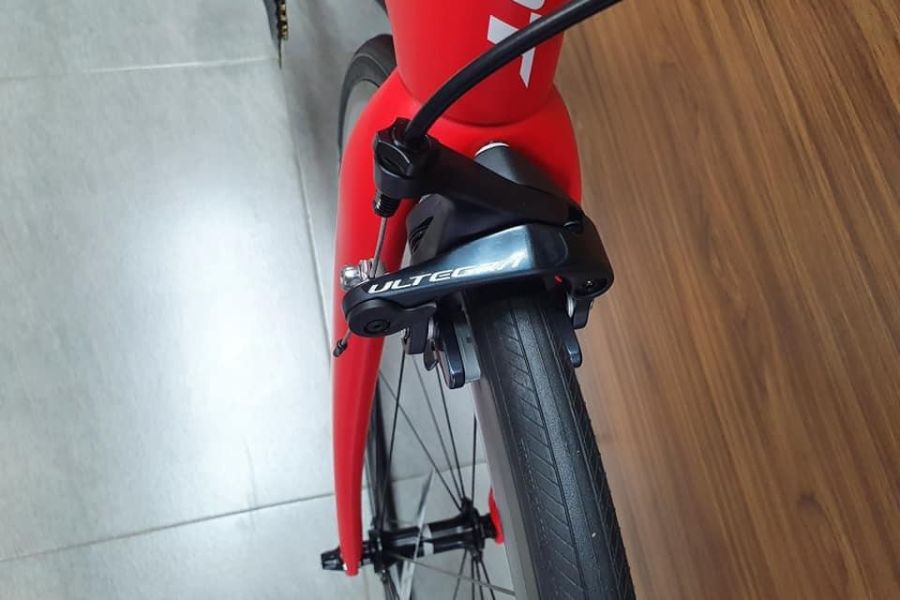 Hệ thống phanh đĩa thủy lực Shimano Ultegra mang lại lực phanh mạnh mẽ và đáng tin cậy, ngay cả trong điều kiện thời tiết không thuận lợi. Đây là yếu tố quan trọng giúp tay đua luôn tự tin kiểm soát tốc độ.