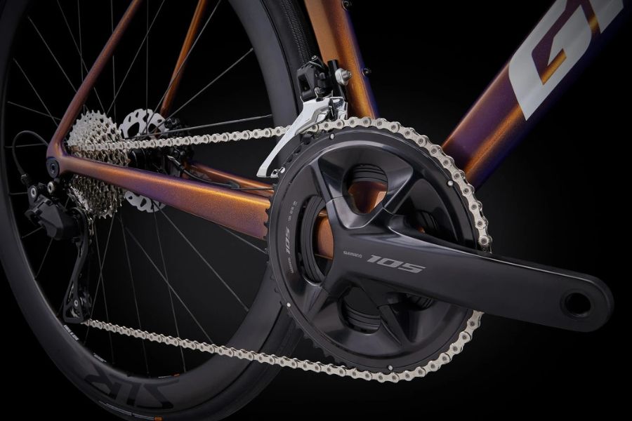 - Chuyển đề trước và sau Shimano 105 giúp duy trì tốc độ ổn định, ngay cả khi leo dốc hoặc tăng tốc.