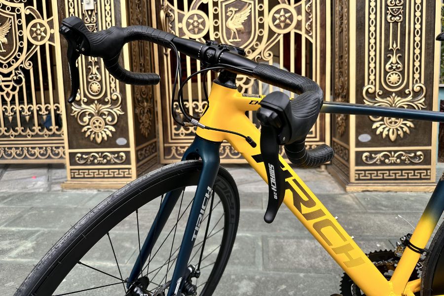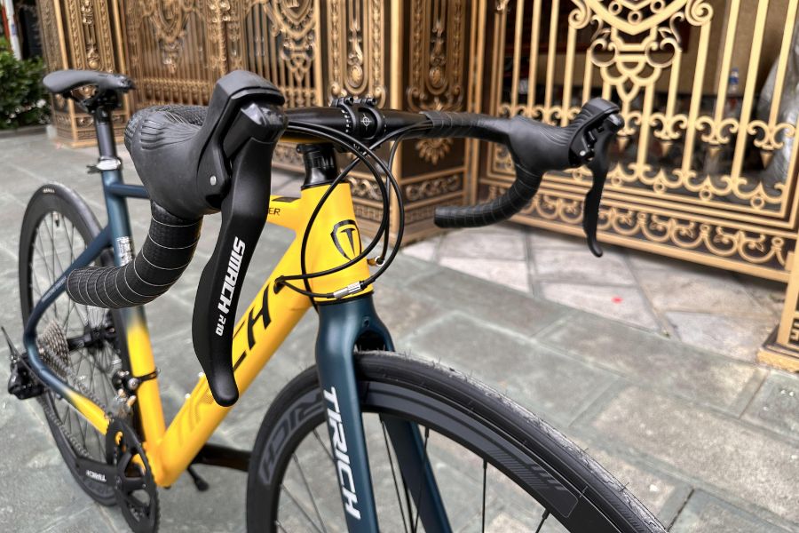 Phuộc trước của xe đạp đua Tirich được thiết kế từ nhôm đúc nguyên khối, giúp giảm trọng lượng tổng thể của xe mà vẫn đảm bảo sự chắc chắn và khả năng hấp thụ chấn động tốt. Đây là điểm nhấn quan trọng giúp xe duy trì tốc độ ổn định ngay cả trên các cung đường gồ ghề.