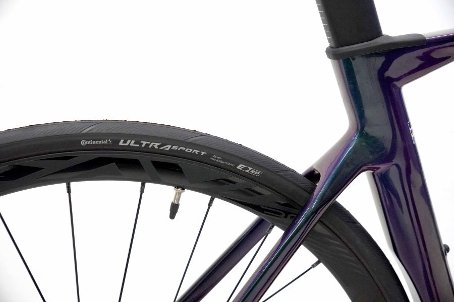 Xe đạp này sử dụng bộ lốp Continental Ultrasport 700x25C kết hợp với vành xe hợp kim nhôm cao 30mm, tăng cường độ bám đường và giảm thiểu lực cản khi đua. Thiết kế này giúp xe duy trì được tốc độ cao và ổn định ngay cả trên những địa hình khó.