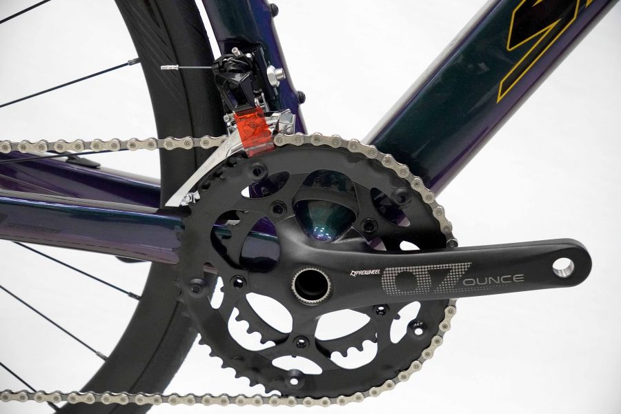 Xe sử dụng đùi đĩa PROWHEEL OUNCE với trục rỗng, cùng với xích KMC X11, giúp tăng cường hiệu quả lực đạp và đảm bảo sự mượt mà khi chuyển số. Đây là yếu tố quan trọng giúp tối ưu hóa khả năng vận hành và độ bền của xe.