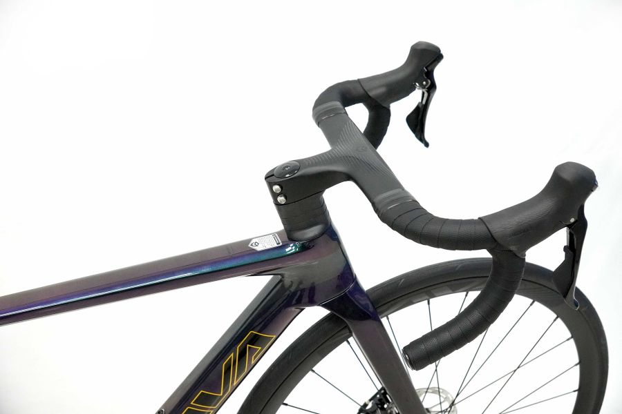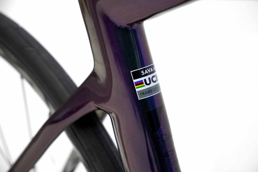 Khung và phuộc của Sava X9.8 R7000 được làm từ carbon Toray T800, nổi tiếng với tính năng nhẹ nhưng cực kỳ bền chắc. Thiết kế này giúp giảm lực cản không khí, tối ưu hóa tốc độ và mang lại sự ổn định trên mọi cung đường đua, đáp ứng tiêu chuẩn của UCI (Liên đoàn Xe đạp Quốc tế).