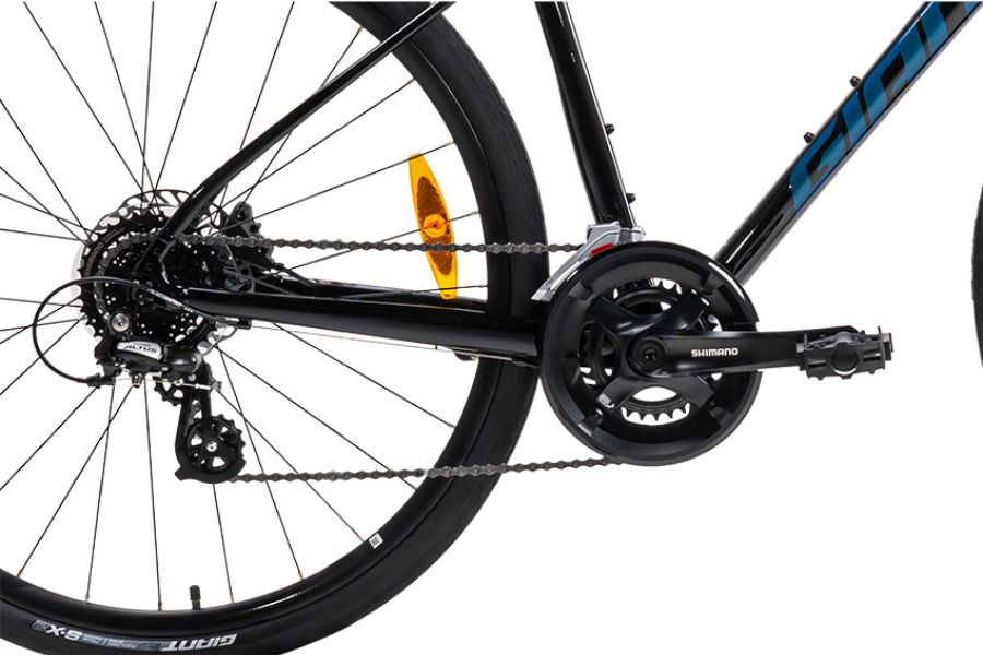 Hệ thống bánh xe của Giant Escape 2 D bản 2024 được trang bị lốp kích thước 700x38C, kết hợp với vành nhôm 2 lớp, giúp xe vận hành ổn định, bám đường tốt và dễ dàng vượt qua các đoạn đường khó.