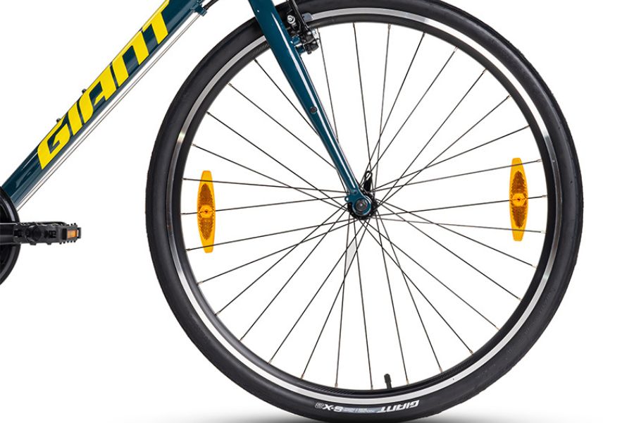Hệ thống bánh xe sử dụng vành hợp kim nhôm hai lớp Giant Double Wall Aluminum, kết hợp với lốp Giant S-X3 kích thước 700x38C, mang lại độ bám đường tốt và khả năng vận hành ổn định trên nhiều loại địa hình.
