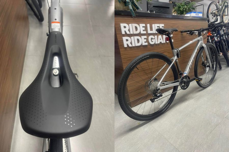 Ghi đông phẳng và cọc yên Giant D-Fuse giúp giảm rung chấn từ mặt đường, mang lại cảm giác thoải mái cho người lái ngay cả trong những chuyến đi dài.
