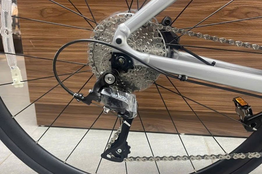 Hệ thống phanh đĩa dầu Tektro và bộ truyền động Shimano Sora mang lại trải nghiệm lái xe an toàn, chính xác và dễ dàng kiểm soát trong mọi điều kiện.