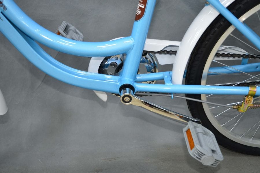 Fascino FM20 sử dụng khung thép không gỉ với lớp sơn tĩnh điện chất lượng cao, giúp bảo vệ khung xe khỏi gỉ sét và giữ cho màu sắc luôn tươi mới. Khung thép chắc chắn giúp xe có khả năng chịu tải lên đến 60 kg, mang lại sự an toàn và độ bền cao cho các bé gái sử dụng hàng ngày.