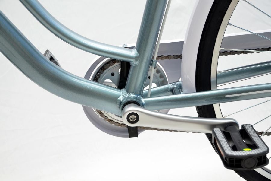 Với bộ truyền động Shimano 7 tốc độ, người lái có thể dễ dàng điều chỉnh tốc độ phù hợp với từng đoạn đường, từ những con đường bằng phẳng cho đến những đoạn dốc. Điều này đặc biệt hữu ích khi bạn cần di chuyển linh hoạt trong thành phố, tránh được việc phải đạp xe quá sức.