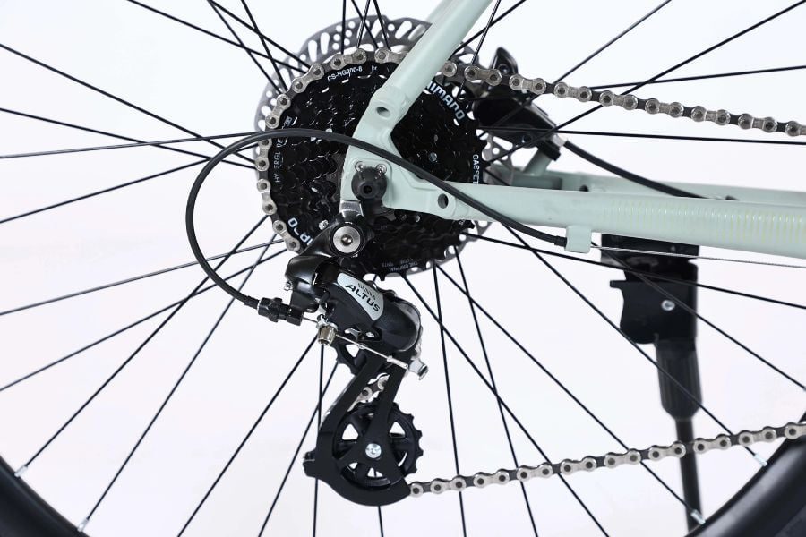 Xe đạp Touring Life City2 được trang bị bộ truyền động Shimano Altus 24 tốc độ, giúp xe chuyển động mượt mà và linh hoạt. Hệ thống này bao gồm tay đề số Shimano M315, gạt đĩa Shimano Tourney TY-500 và gạt líp Shimano Altus M310. Điều này đảm bảo khả năng thay đổi số nhanh chóng và chính xác, phù hợp với mọi điều kiện đường phố.