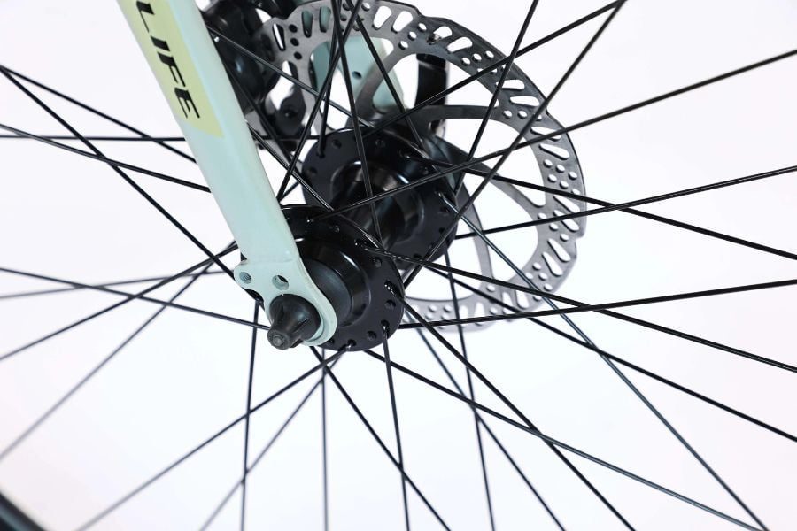 Phuộc của xe đạp Touring Life City2 được làm từ hợp kim nhôm đúc nguyên khối, giúp tối ưu hóa tốc độ và hiệu suất trên đường phố. Phuộc đơ không chỉ giúp xe nhẹ hơn mà còn mang lại cảm giác lái mượt mà và nhanh chóng, phù hợp cho các chuyến đi ngắn và dài trong thành phố.