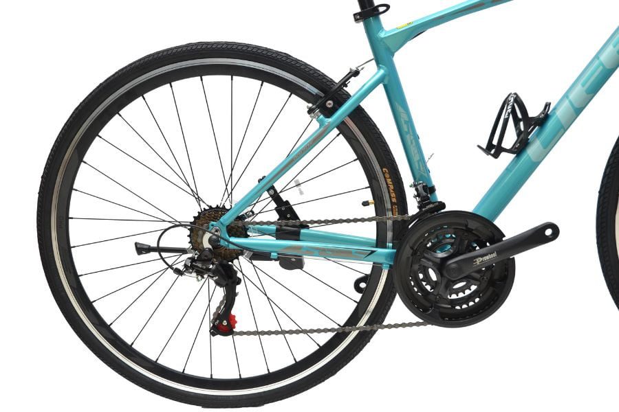 Bánh xe của xe đạp Life Faith được làm từ hợp kim nhôm 2 lớp, với kích thước 700x35C, phù hợp cho các chuyến đi đường dài và di chuyển hàng ngày. Lốp COMPASS đảm bảo độ bám đường tốt và bền bỉ, giúp xe di chuyển êm ái trên các loại đường phố. Lốp xe còn có khả năng chịu mài mòn tốt, tăng độ bền và tuổi thọ của xe.
