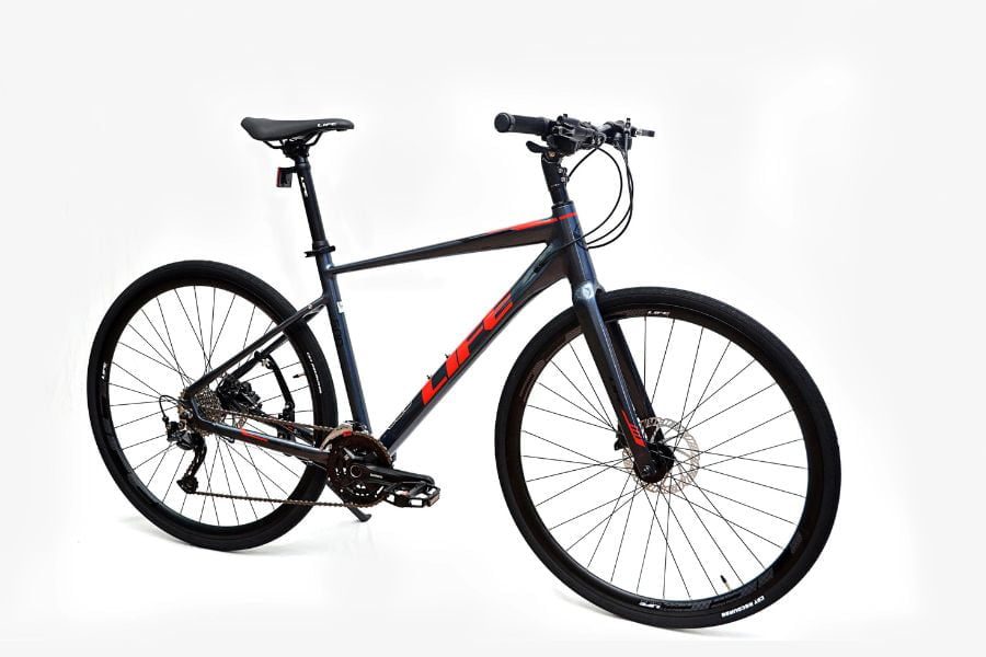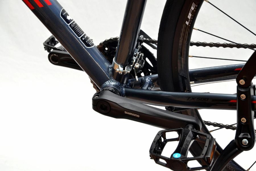 Xe đạp Touring Life TX500 được trang bị khung xe bằng hợp kim nhôm siêu nhẹ, không mối hàn, với cáp âm khung. Thiết kế này không chỉ giúp giảm trọng lượng tổng thể mà còn tăng tính thẩm mỹ và độ bền của xe, mang lại vẻ ngoài gọn gàng và tinh tế.